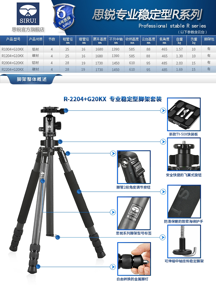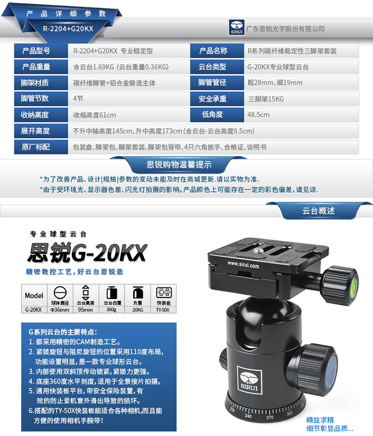 • 商品名稱:思銳(SIRUI)三腳架 R2204+G20KX 攝影三腳架 專業(yè)穩(wěn)定