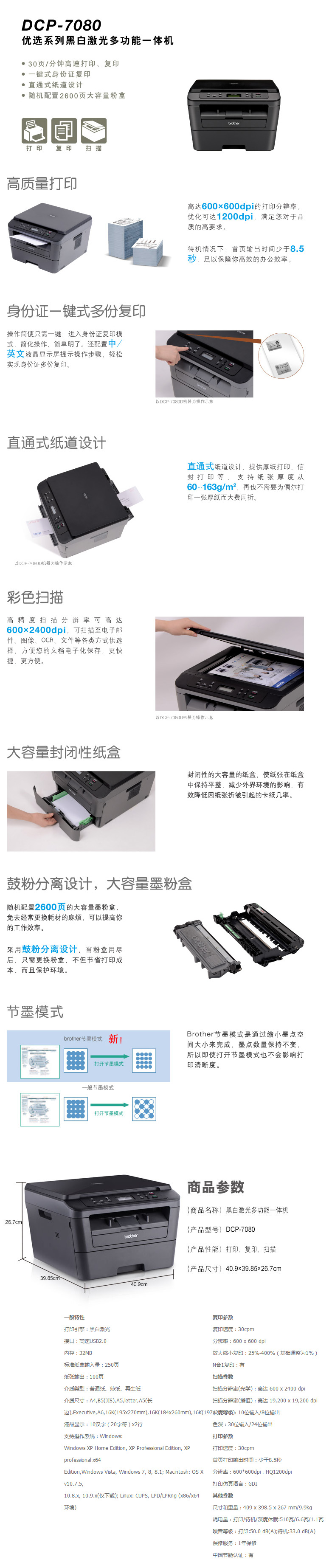 • 商品名稱:兄弟(Brother) DCP-7080 黑白激光多功能一體機(jī)(打印、復(fù)印、掃描)