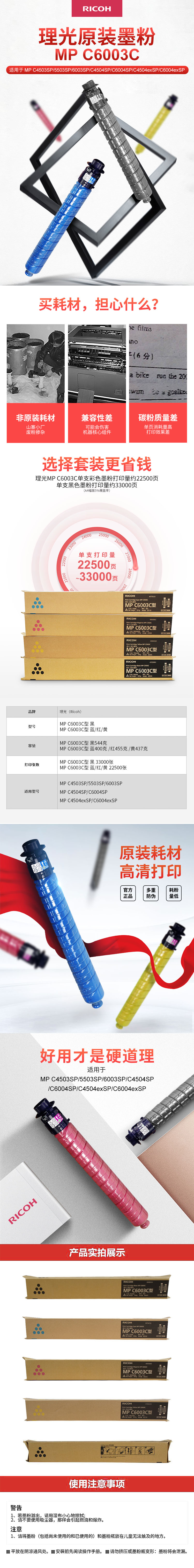 • 商品名稱:理光(Ricoh)黑色碳粉盒MPC6003C型 適用于MP C4503SP/5503SP/6003SP/C4504SP/C6004SP/C4504EXSP/C6004EXSP