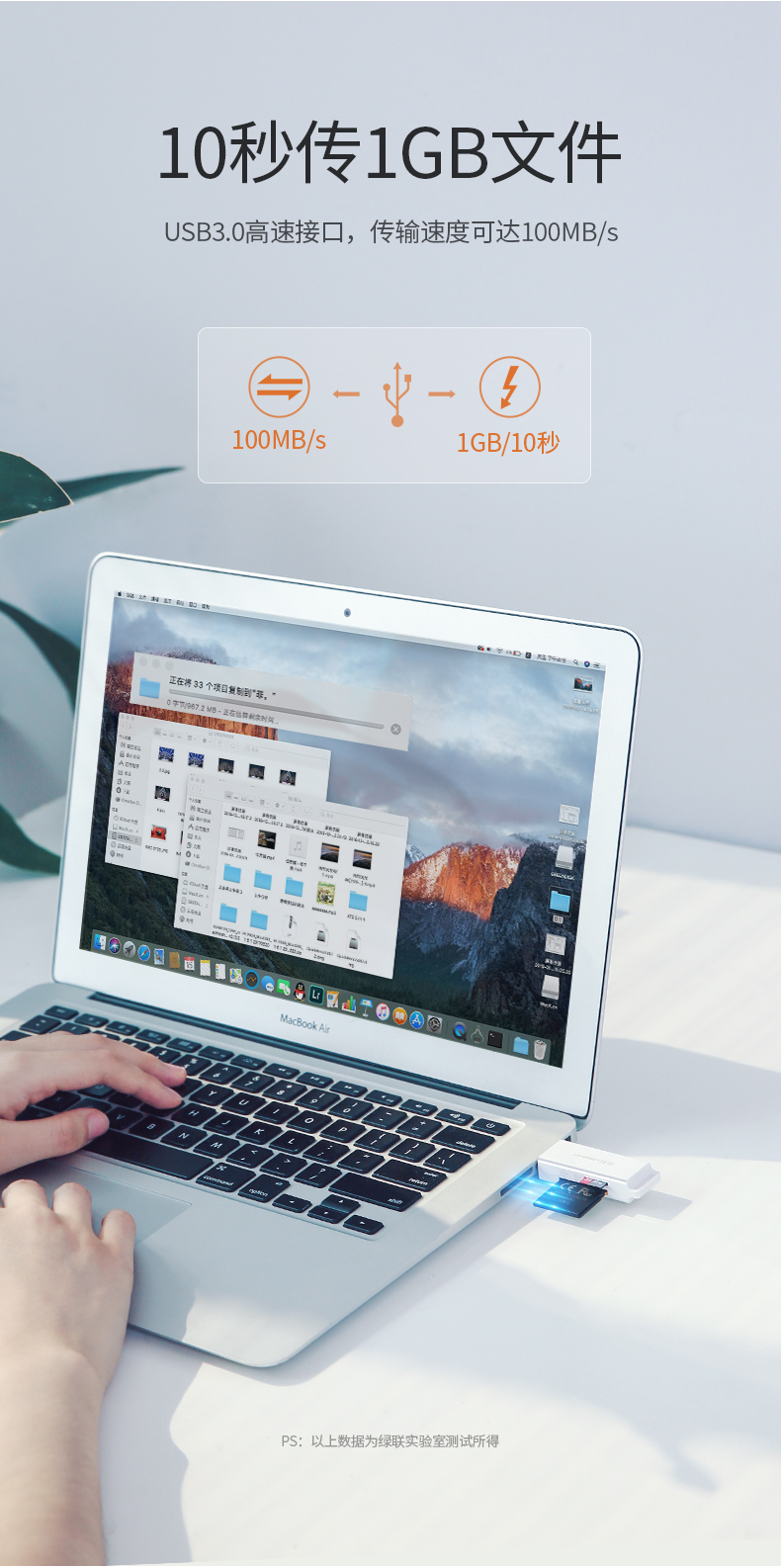 綠聯(lián)(UGREEN)多功能讀卡器 USB3.0 白色40751