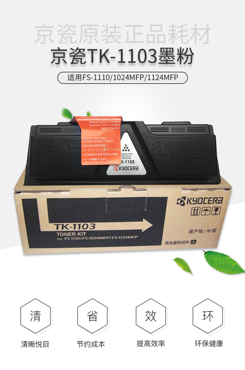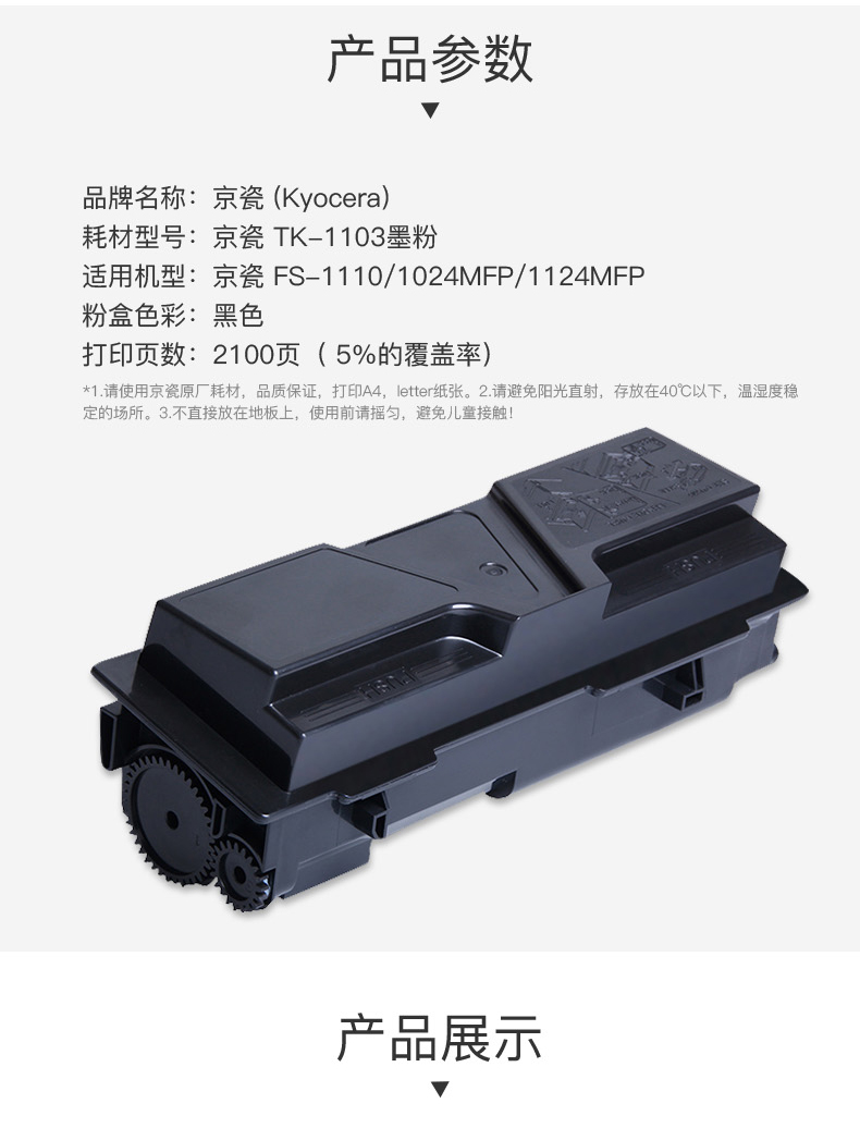 • 商品名稱:京瓷 Kyocera 墨粉 TK-1103 2100張 適用于FS-1110/1024/1124MFP