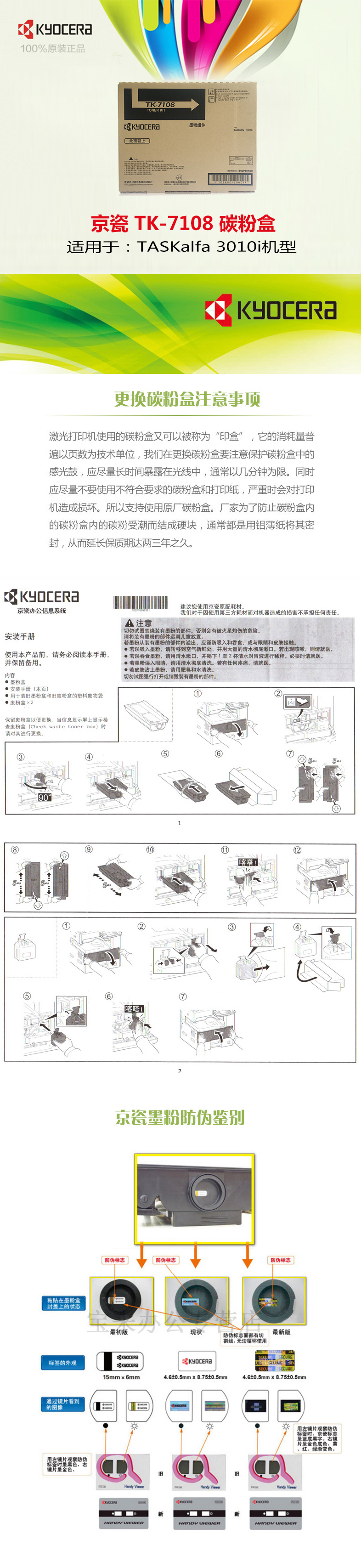 • 商品名稱:京瓷(Kyocera)TK-7108 黑色墨粉盒 基于A4 5%覆蓋率 24000頁 適用機型TASKalfa 3010i