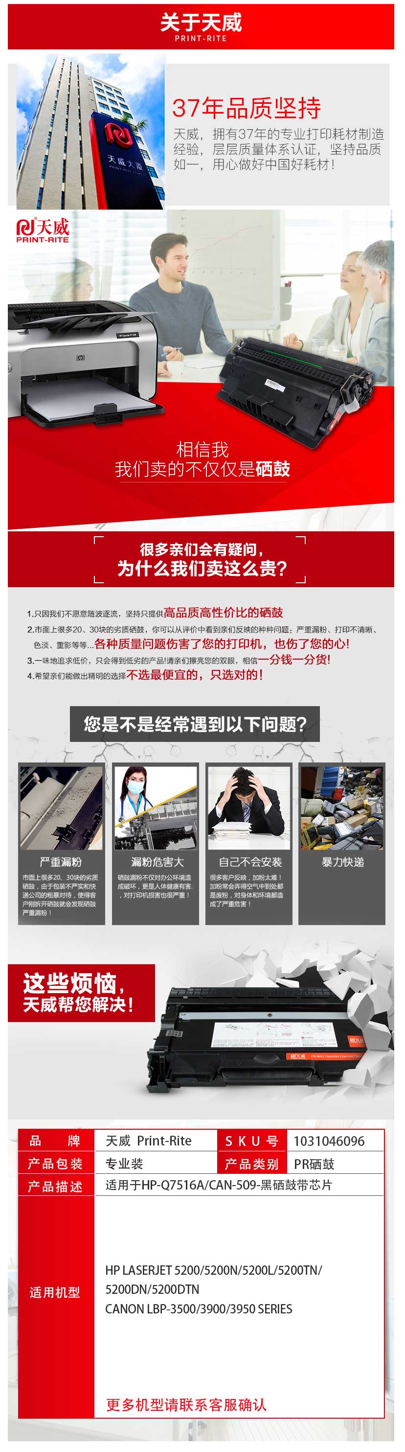 天威(PrintRite) Q7516A 黑色硒鼓(適用于惠普LaserJet 5200L)