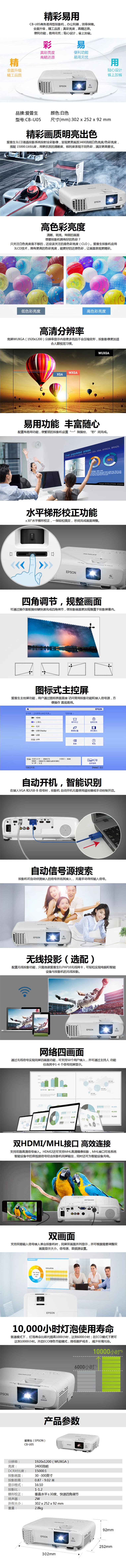 • 商品名稱:愛(ài)普生(EPSON)CB-U05 投影儀