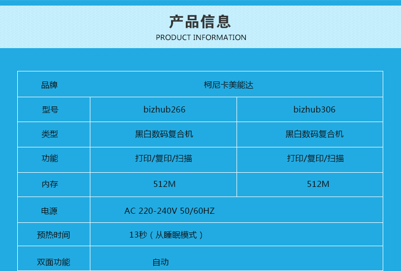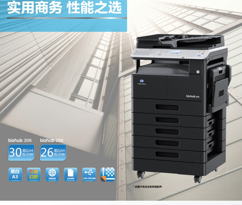 • 商品名稱:柯尼卡美能達 KONICA MINOLTA bizhub 266i A3激光多功能一體機 打印/復印/掃描/(含雙面自動輸稿器+雙紙盒)
