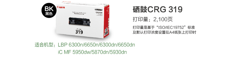 佳能(Canon)CRG-319 黑色硒鼓 適用于佳能 LBP 6300n/6650n/6300dn/6650dn/ MF 5950DN/5870DN/5930DN (kj)