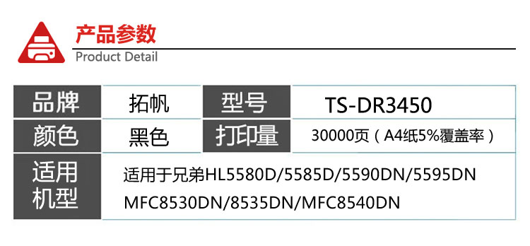 • 商品名稱:拓帆TS-DR3450黑色打印機(jī)硒鼓適用于兄弟HL-5590DN