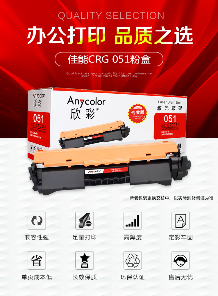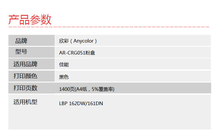 • 商品名稱:欣彩(Anycolor)CRG 051粉盒AR-CRG051 適用佳能Canon LBP 162DW 161DN 打印機(jī) (kj)