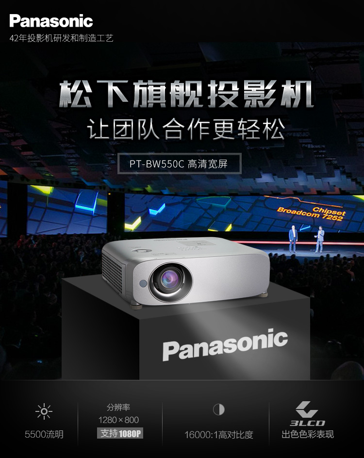 松下(Panasonic)PT-BW550C 投影儀 5500流明 3LCD顯示技術(shù) 手動變焦 1280*800dpi 整機三年保修 燈泡半年保修