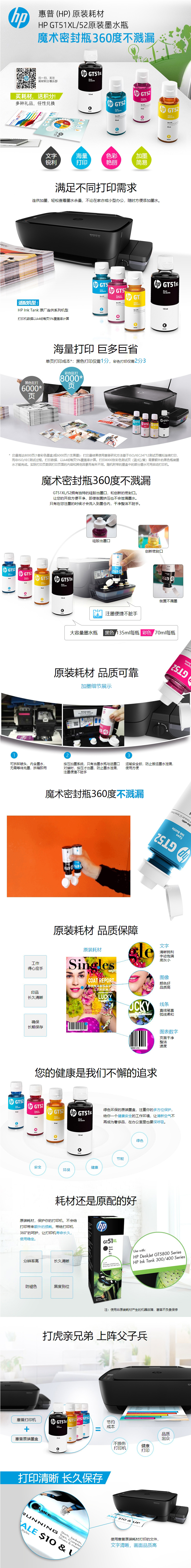 • 商品名稱:惠普(HP)GT51XL黑 GT52青/紅/黃 四色墨水 70ml 適用于5810 5820 418 419 410 約8000頁