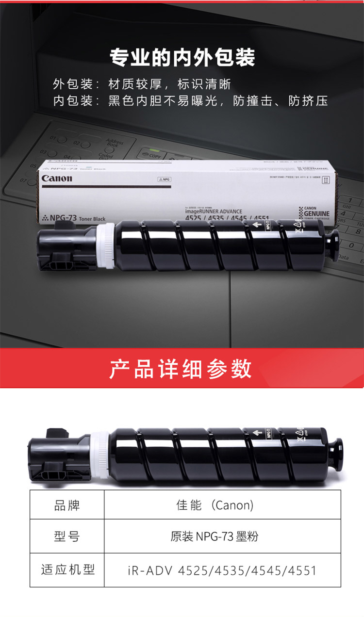 • 商品名稱:佳能(Canon)碳粉NPG-73適用于iR-ADV 4525/4535/4545/4551