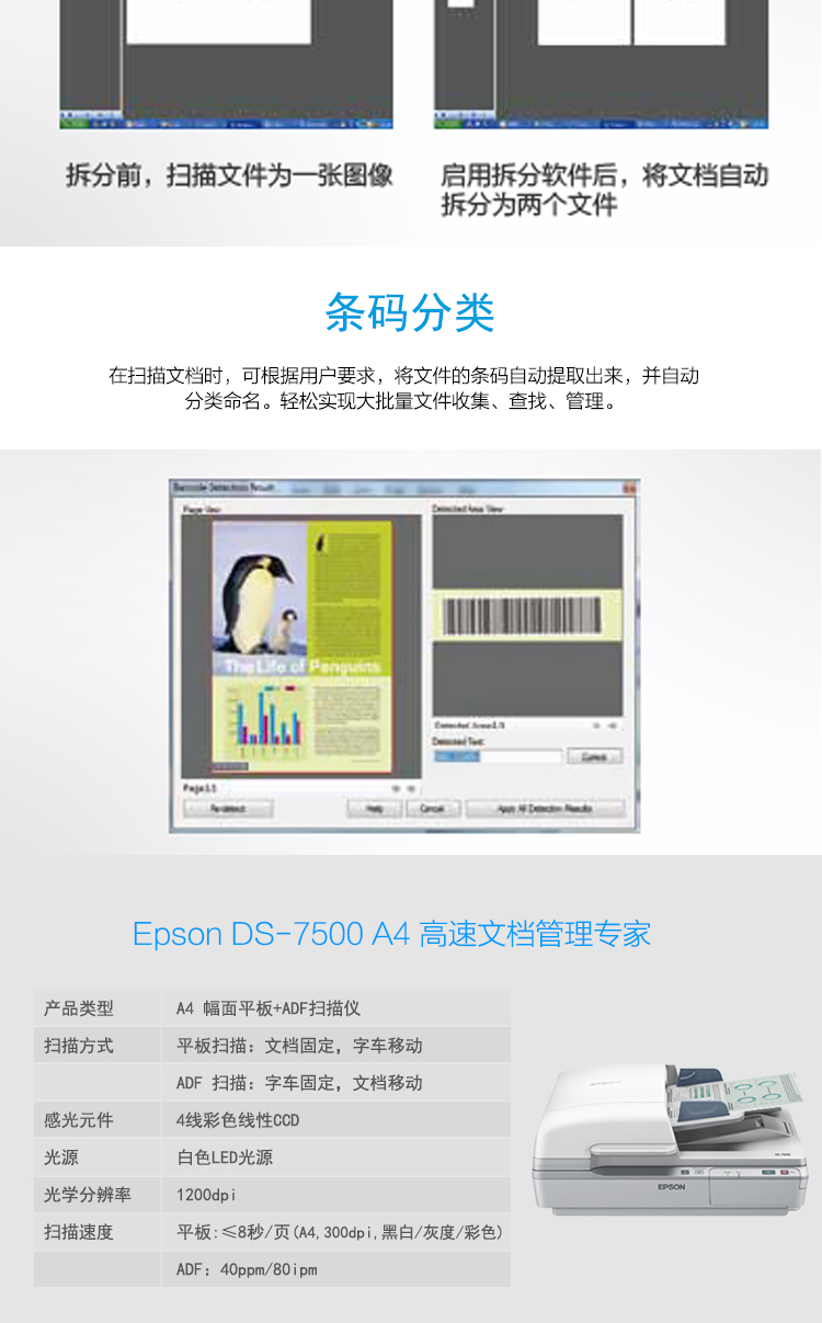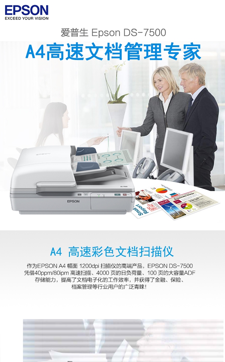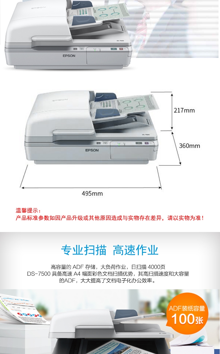 • 商品名稱:愛(ài)普生(EPSON)DS-7500 A4 超高速文檔掃描儀