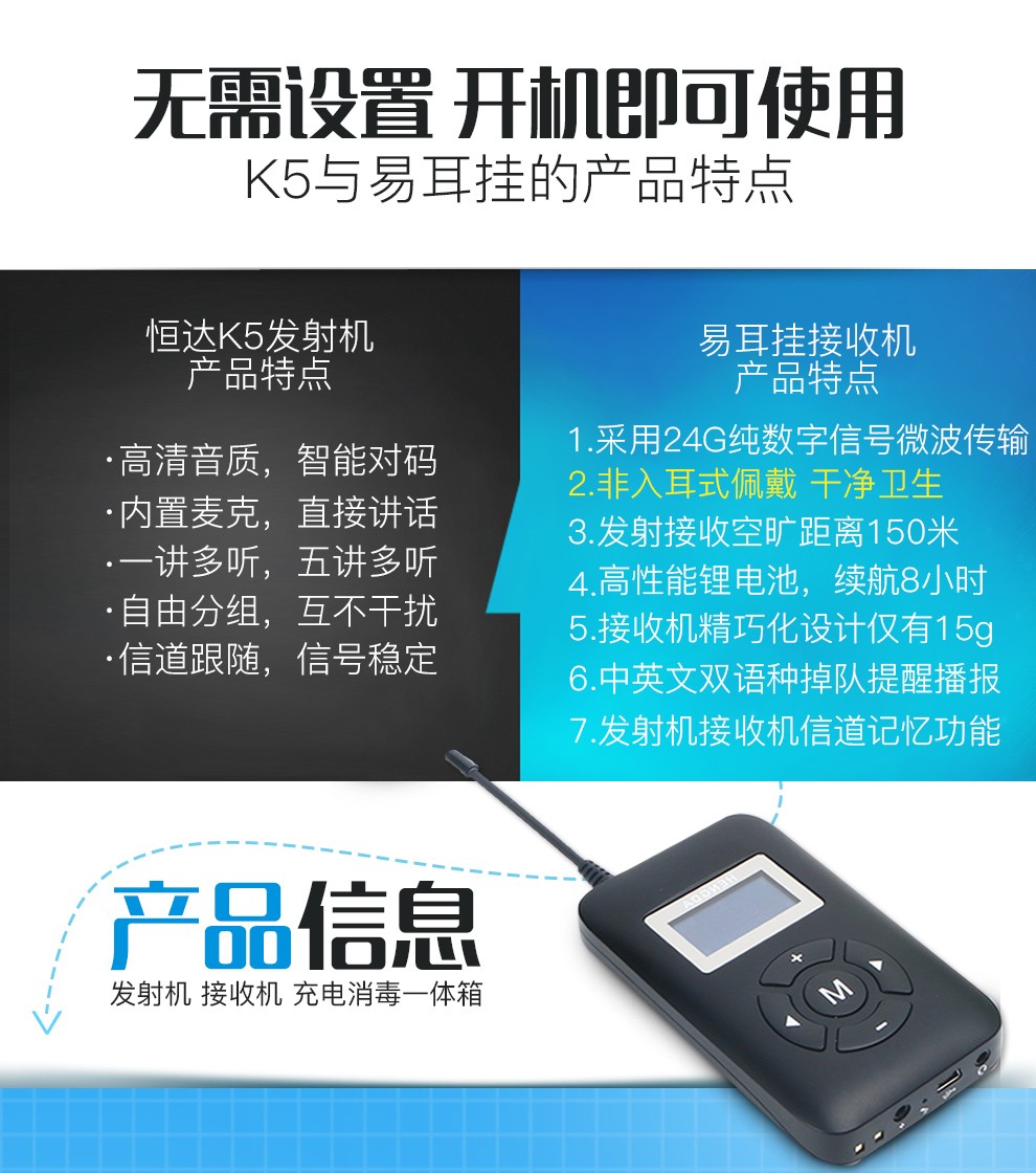 • 商品名稱(chēng):恒達(dá)文博 無(wú)線講解器一對(duì)多 工廠參觀行政接待講解員導(dǎo)游解說(shuō)同聲傳譯機(jī)團(tuán)隊(duì)講解器 K5易耳掛 (2講+100聽(tīng)+2個(gè)充電箱+2個(gè)頭戴式麥克風(fēng)+2個(gè)領(lǐng)夾式麥克風(fēng))(kj)
