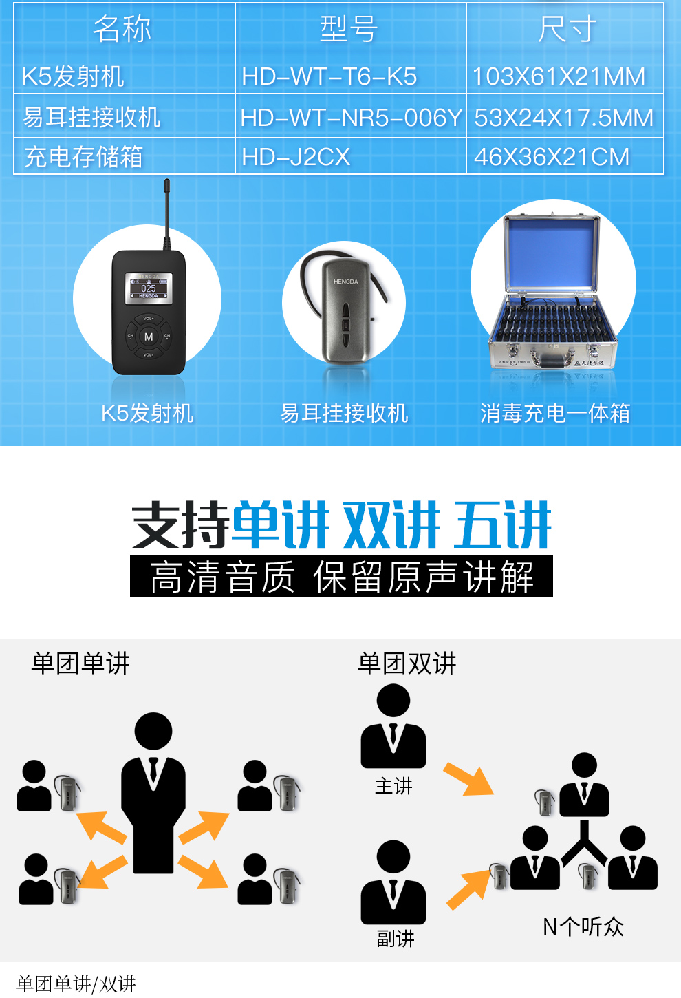 恒達(dá)文博 無(wú)線講解器一對(duì)多 工廠參觀行政接待講解員導(dǎo)游解說(shuō)同聲傳譯機(jī)團(tuán)隊(duì)講解器 K5易耳掛 (2講+100聽(tīng)+2個(gè)充電箱+2個(gè)頭戴式麥克風(fēng)+2個(gè)領(lǐng)夾式麥克風(fēng))(kj)