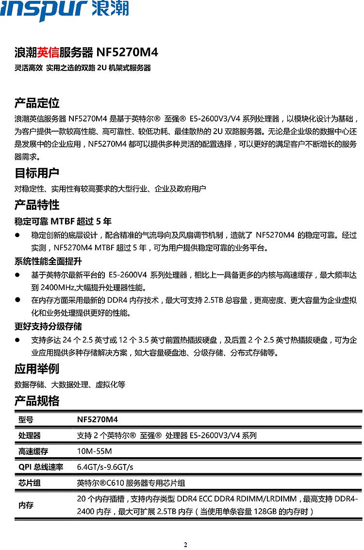 • 商品名稱:浪潮(INSPUR)NF5270M4 1*E5-2650V4 4*16G DDR4內存 4*600GB SAS 15K硬盤 RAID卡 0820P (2G緩存 )DVD-RW 2*550W電源 雙口千兆網卡 機架式導軌