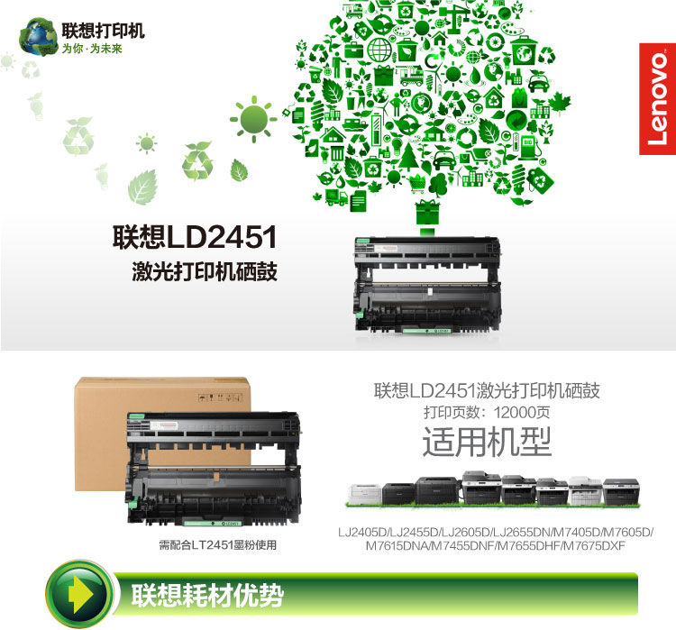 聯(lián)想(Lenovo)LD2451 硒鼓(適用LJ2605D/LJ2655DN/M7605D/M7615DNA/M7455DNF/7655DHF打印機(jī))(kj)