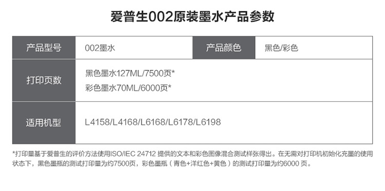 • 商品名稱:愛普生(EPSON)002黃色墨水瓶T03X4(適用L4158/L4168/L6168/L6178/L6198)