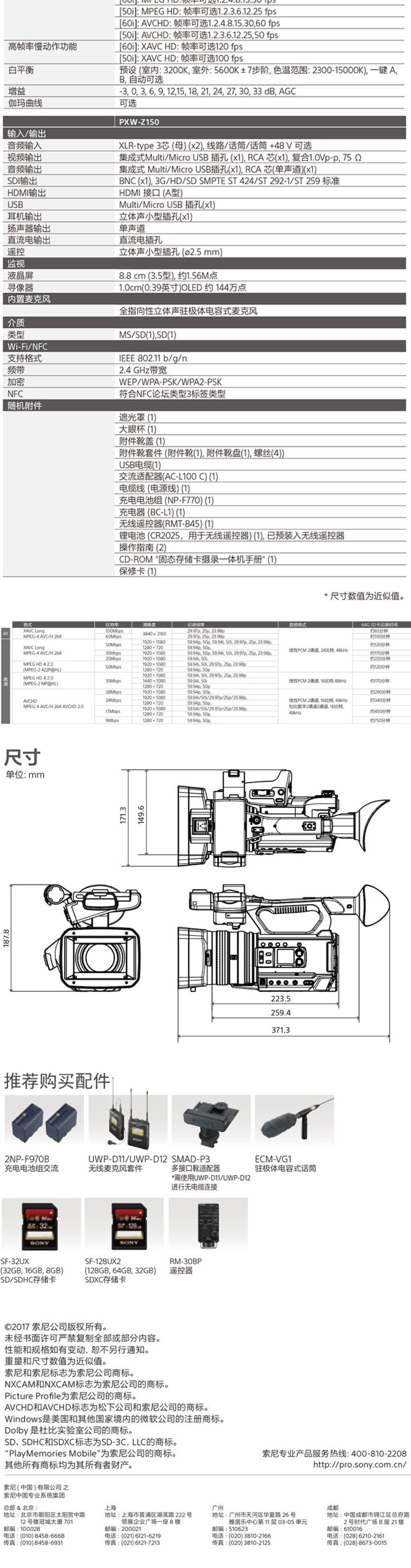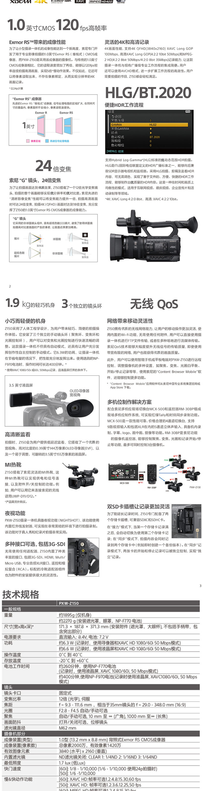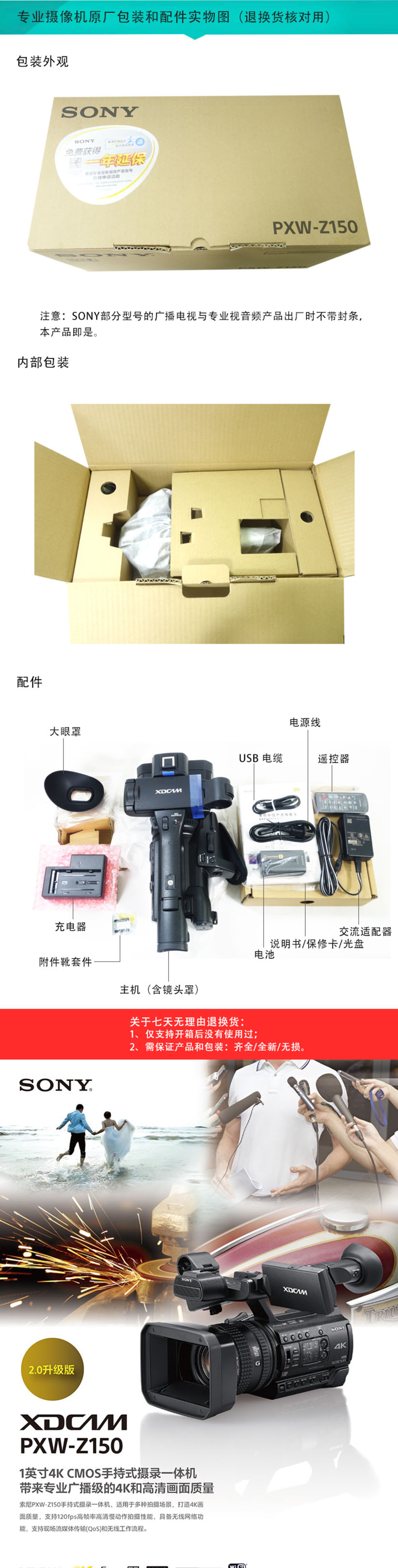 • 商品名稱:索尼(SONY)PXW-Z150 專業(yè)攝像機 含原裝備用電池