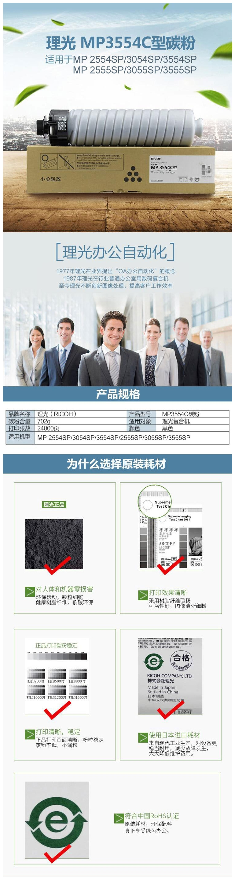 • 商品名稱(chēng):理光(Ricoh)碳粉MP3554C型 適用MP2554SP/3054SP/3554SP