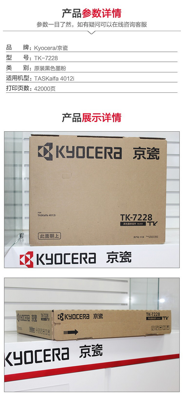 京瓷(KYOCERA)TK-7228 黑色粉盒 42000頁打印量 適用于TASKalfa 4012i