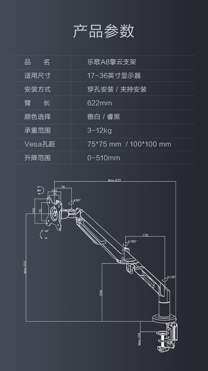 • 商品名稱:樂歌(Loctek) A8擎云液晶電腦顯示器支架 旋轉(zhuǎn)電腦架 可升降桌面支架桌面免打孔電腦支架 (kj)