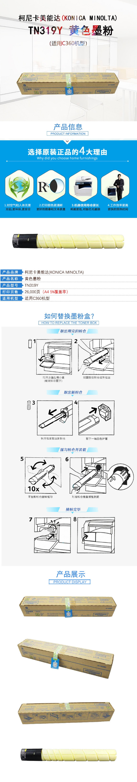 • 商品名稱:柯尼卡美能達(KONICA MINOLTA) TN319Y 黃色 碳粉 適用C360