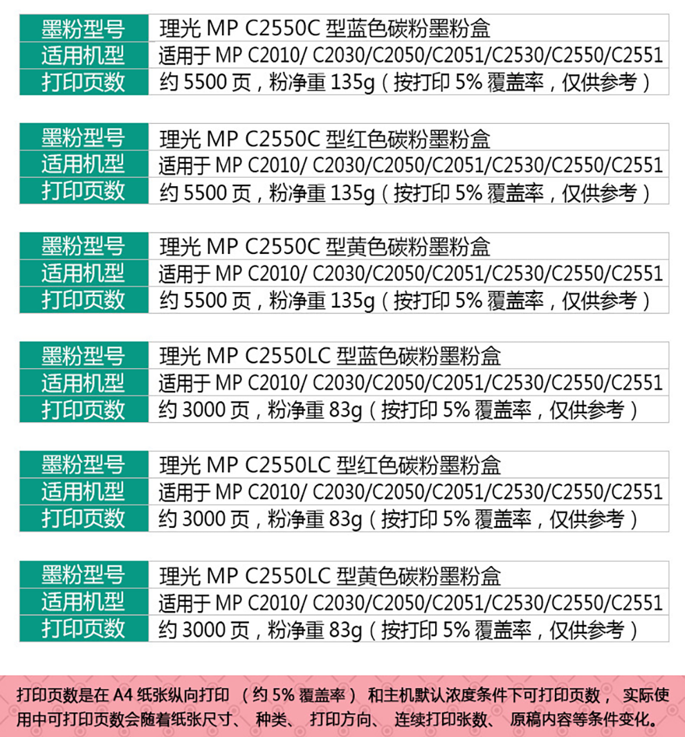 • 適用機(jī)型:MP C2010/ C2030/C2050/C2051/C2530/C2550/C2551