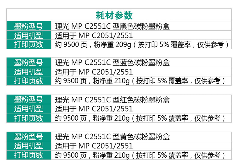 • 適用機(jī)型:MP C2010/ C2030/C2050/C2051/C2530/C2550/C2551