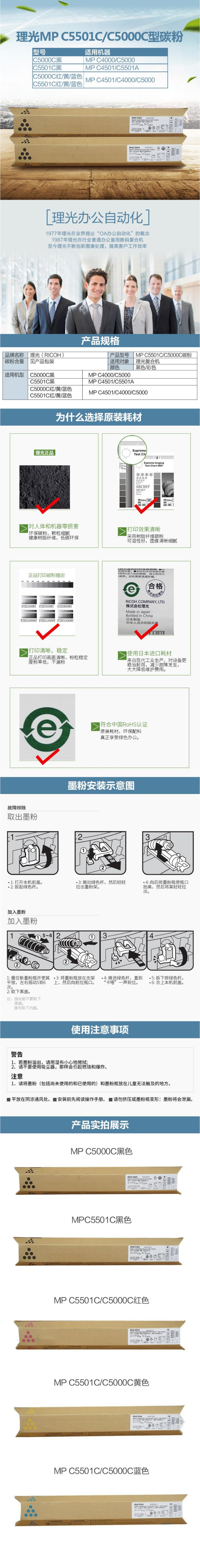 • 商品名稱:理光(Ricoh)MPC5501C/C5000C 黃色碳粉盒1支裝 適用MP C4501/C4000/C5000