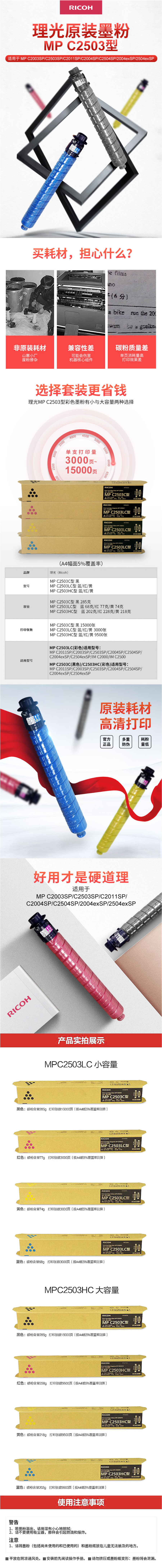 • 商品名稱:理光(Ricoh)MP C2503C 四色大容量墨粉盒套裝