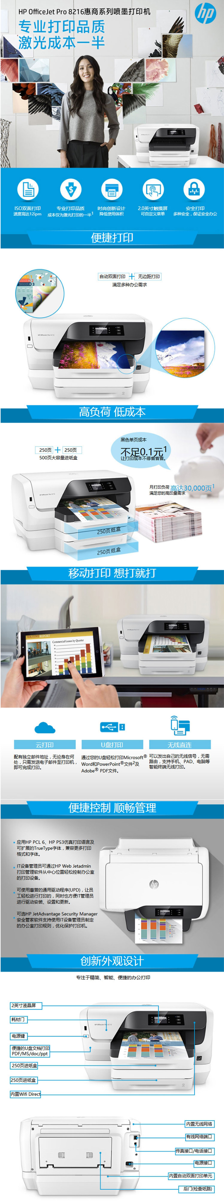 - 商品名稱:惠普(HP)OfficeJet Pro 8216 All-in-One 噴墨打印機(jī) 無線直連 自動(dòng)雙面打印 原廠保修一年