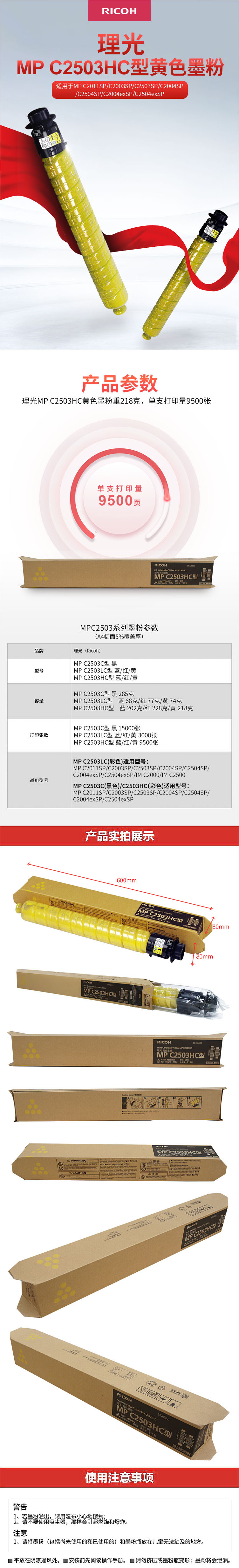 • 型號(hào):黃色墨粉盒 MP C2503HC型
