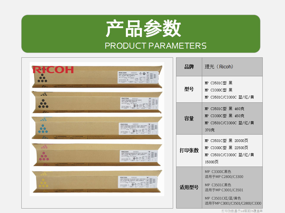 • 商品名稱(chēng):理光(Ricoh)MPC3501C/C3300C 黃色碳粉盒 適用MP C3001/C3501/C2800/C3300