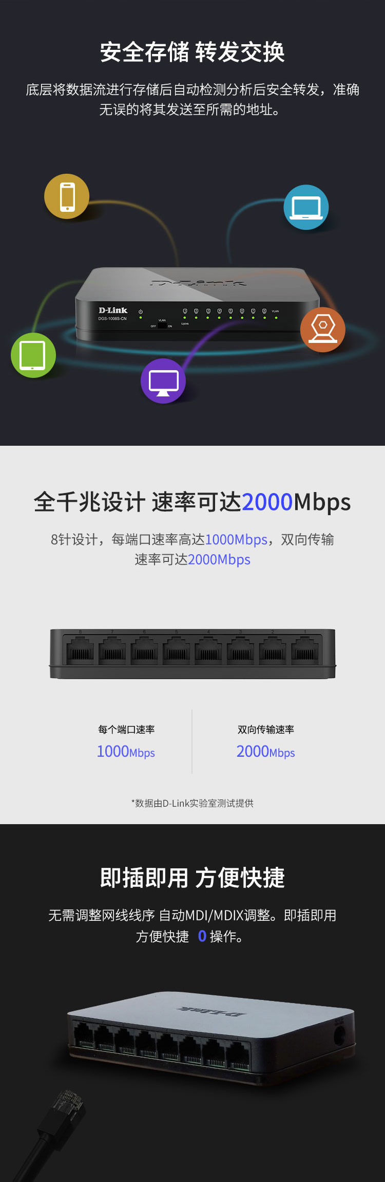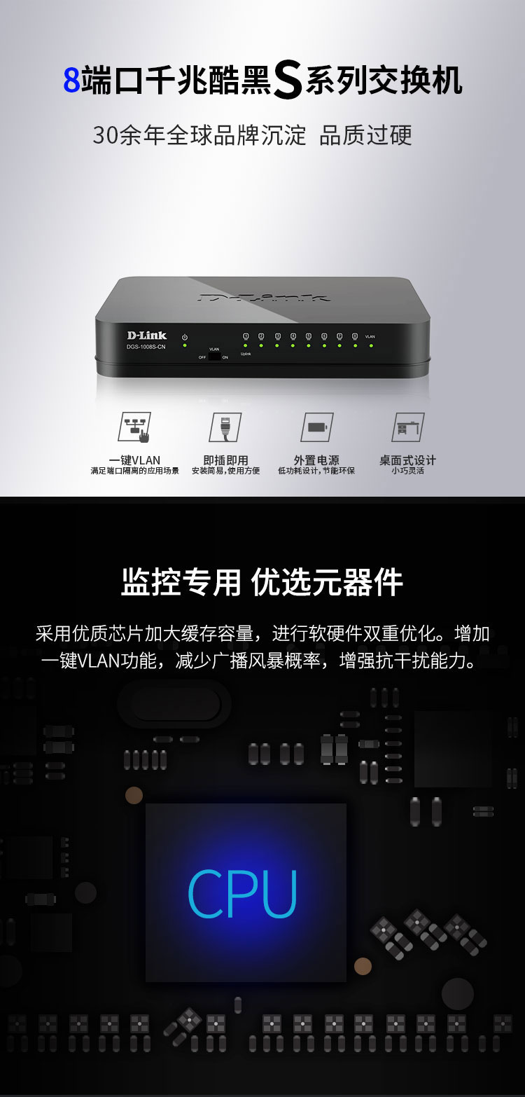 友訊(D-Link)dlink DGS-1008S-CN 千兆8口交換機 監(jiān)控交換機 SOHO交換機 桌面式交換機