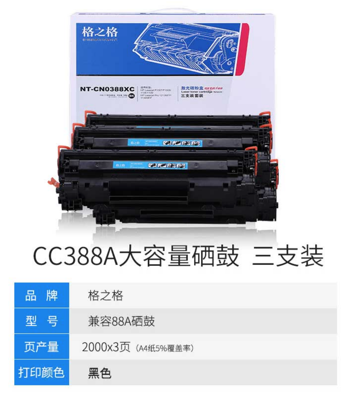 - 商品名稱:格之格 CC388A 硒鼓 大容量NT-CN0388XC 適用于惠普M1136 p1108 m1216nfh m126nwm打印機(jī) 一支裝