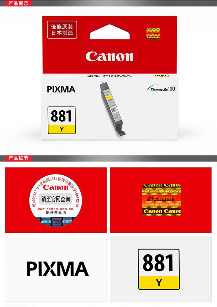 - 商品名稱:佳能(Canon) CLI-881 Y 黃色墨盒 適用TS9180、TS8180、TS6180、TR8580