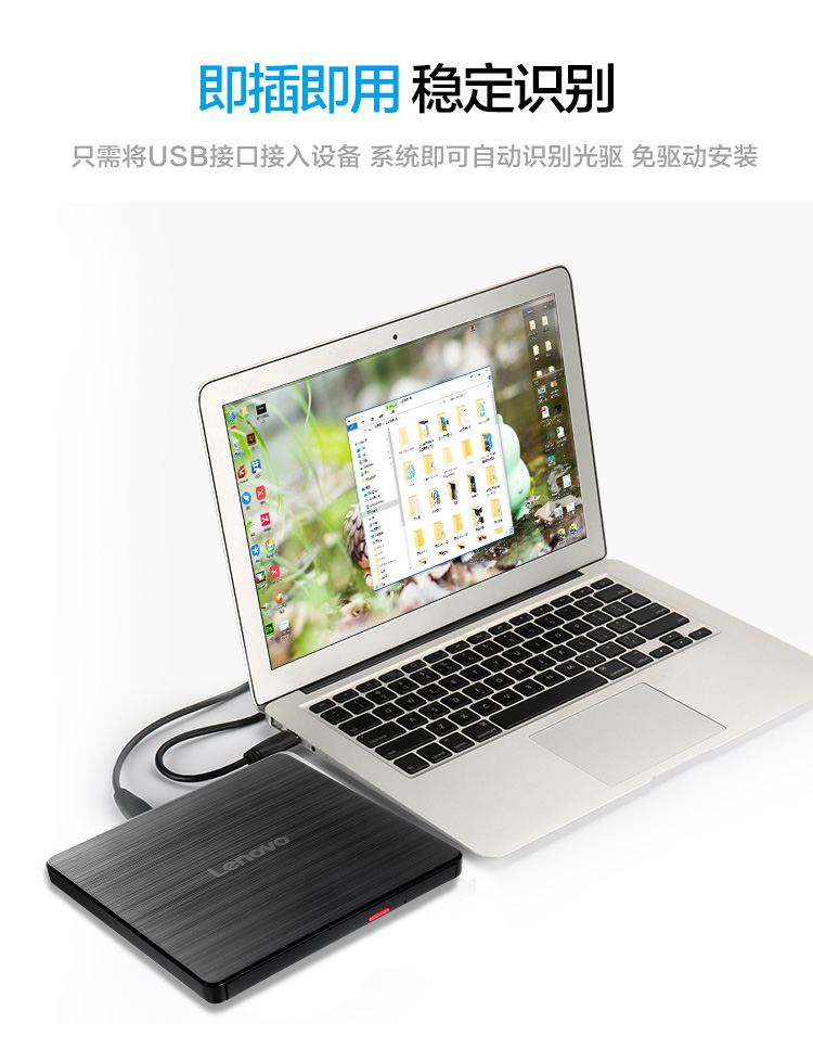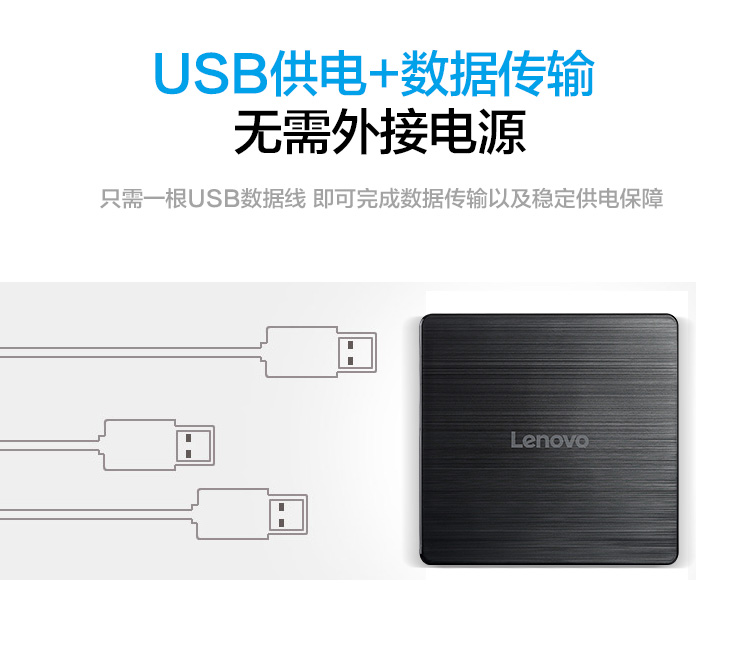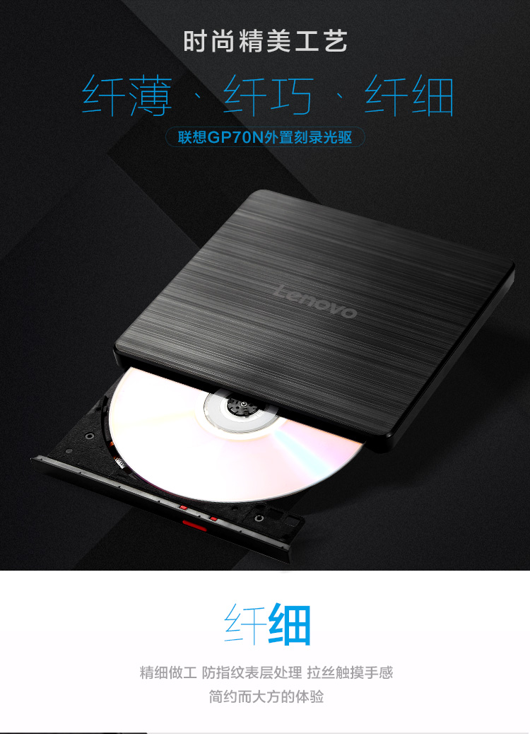 聯(lián)想(Lenovo)8倍速 USB2.0 外置光驅(qū) 外置DVD刻錄機 移動光驅(qū) 黑色(兼容Windows/蘋果MAC系統(tǒng)/GP70N)(kj)