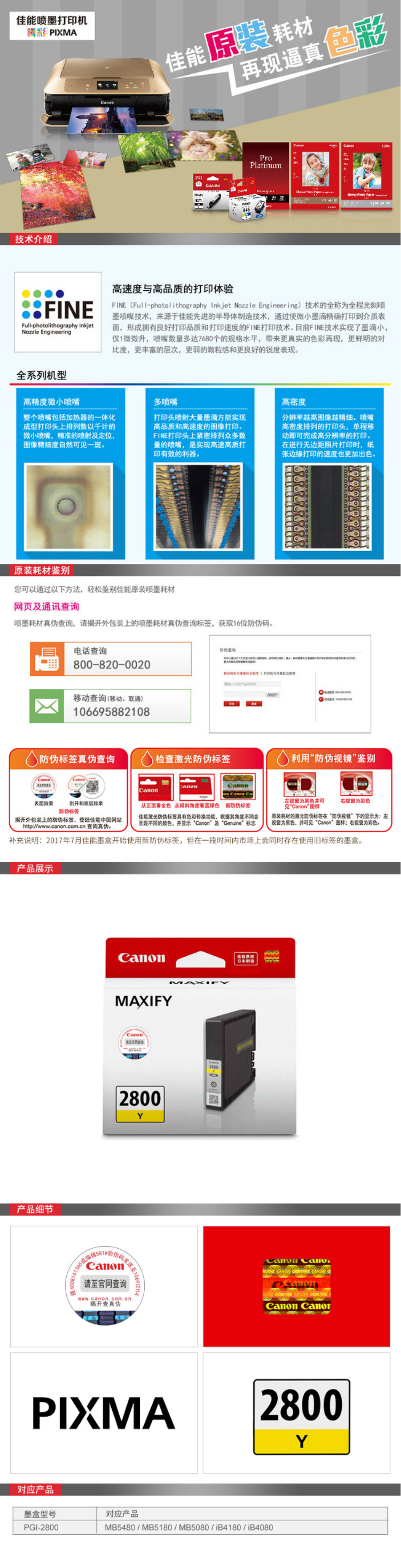 • 商品名稱:佳能(Canon)PGI-2800 Y 黃色 墨盒 適用于IB4080 MB5080 4180 5180
