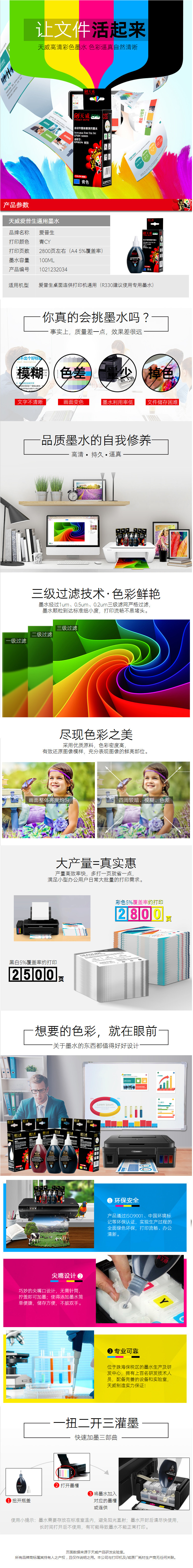 • 商品名稱:天威(PrintRite)適用愛(ài)普生EPSON 打印機(jī)墨水 連供 墨盒 100ml填充墨水 青色
