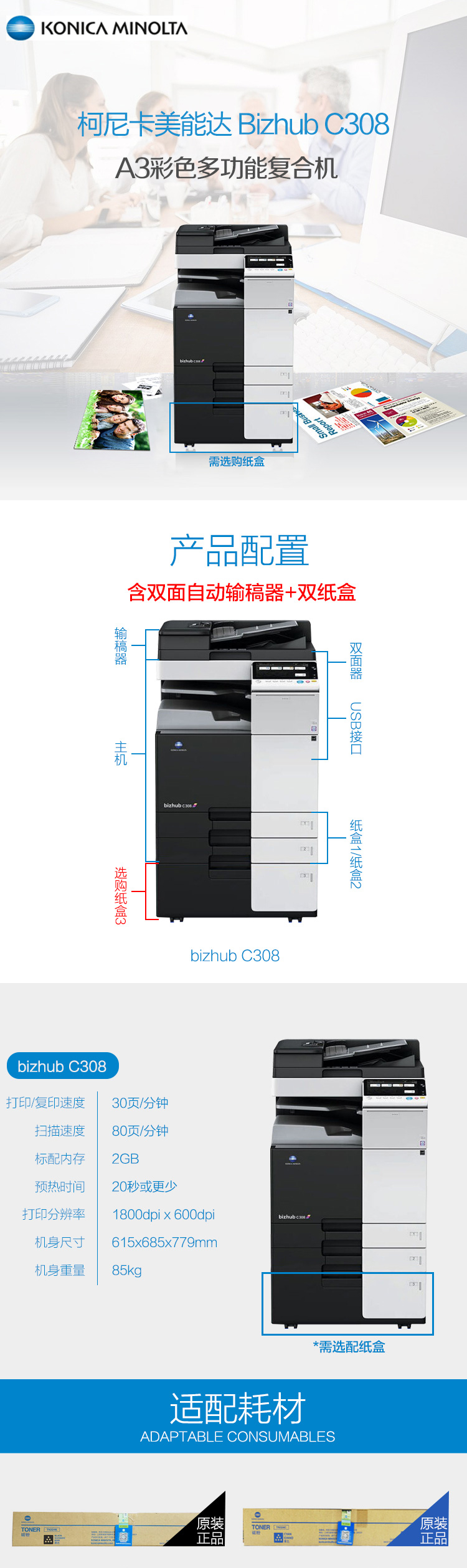 • 商品名稱:柯尼卡美能達(dá)/KONICA MINOLTA bizhub c308 內(nèi)置裝訂器