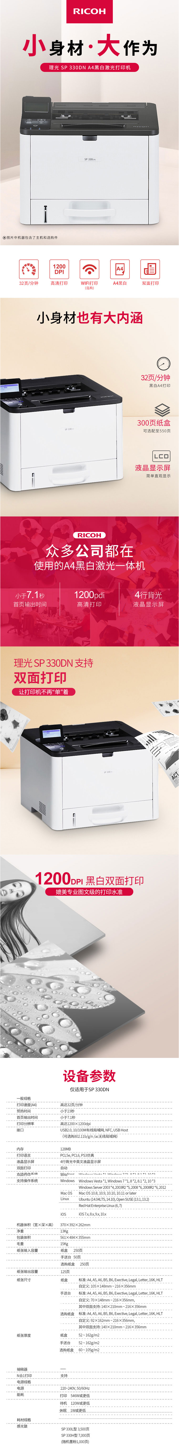 • 商品名稱:理光(Ricoh)SP 330DN A4黑白激光打印機 32頁/分鐘