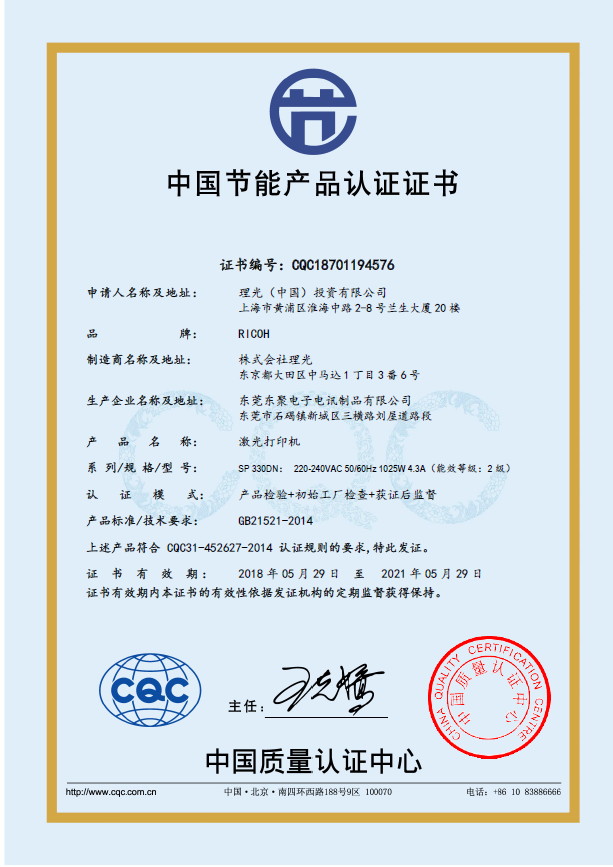 • 節(jié)能產(chǎn)品證書編號:CQC18701194576