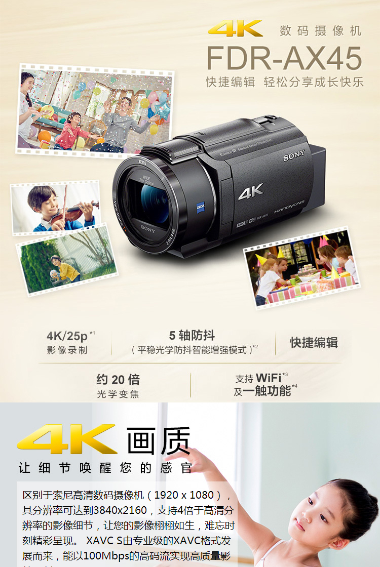 • 商品名稱:索尼(SONY)FDR-AX45 高清數(shù)碼攝像機(jī) (另含2塊NP-FV70A電池)
