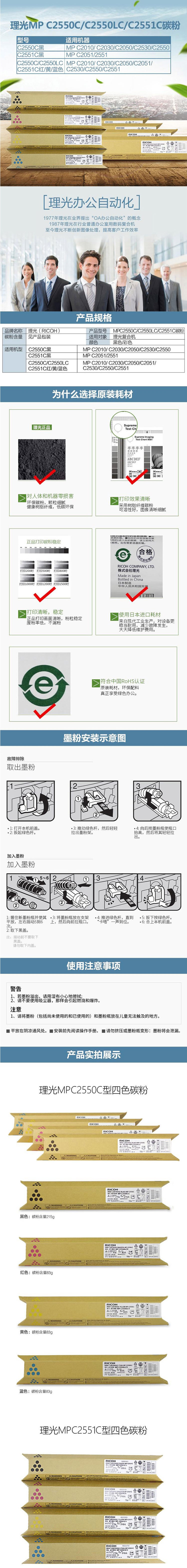 • 商品名稱:理光(Ricoh)藍色碳粉盒MP C2550C型 (5,500張) 適用于MP C2010/ C2030/C2050/C2051/C2530/C2550/C2551