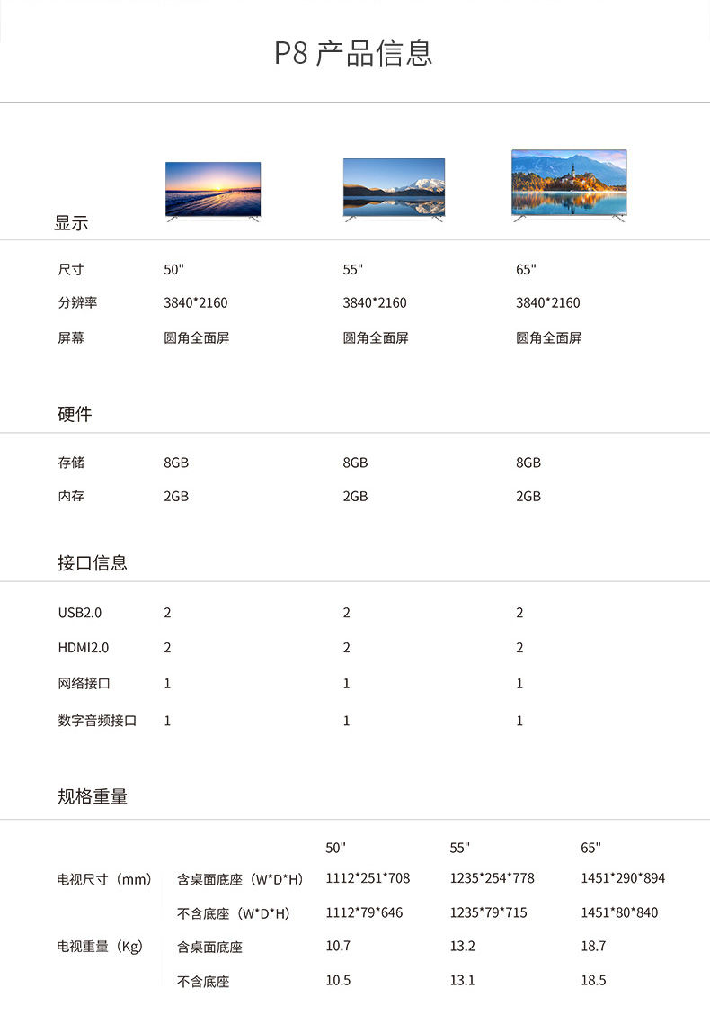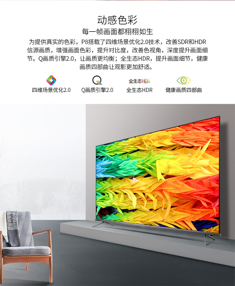 • 商品名稱:TCL 4K超高清 65P8 金屬超窄邊 防藍(lán)光 64位32核HDR人工智能語(yǔ)音液晶電視機(jī)