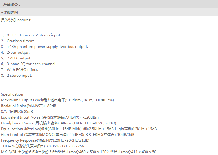 • 商品名稱:奧瑪/OMARPA PV8 8路調(diào)音臺