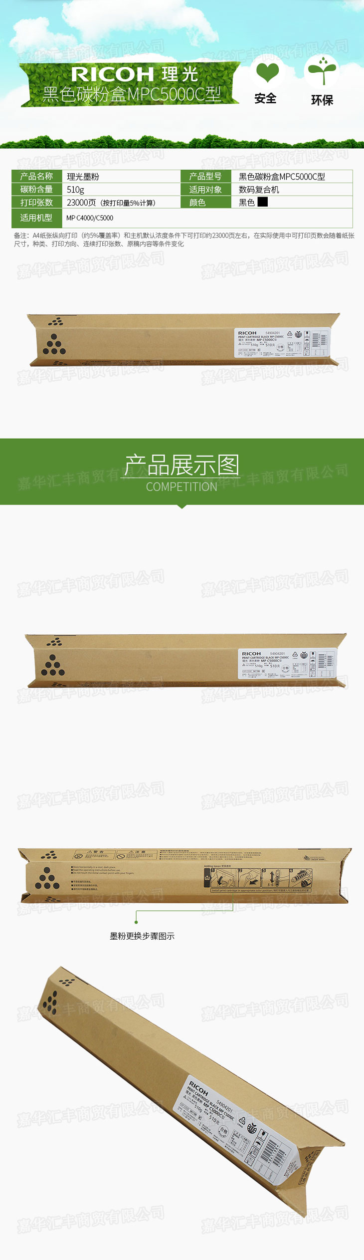 • 商品名稱:理光(Ricoh)黑色碳粉盒MPC5000C型 適用于MP C4000/C5000