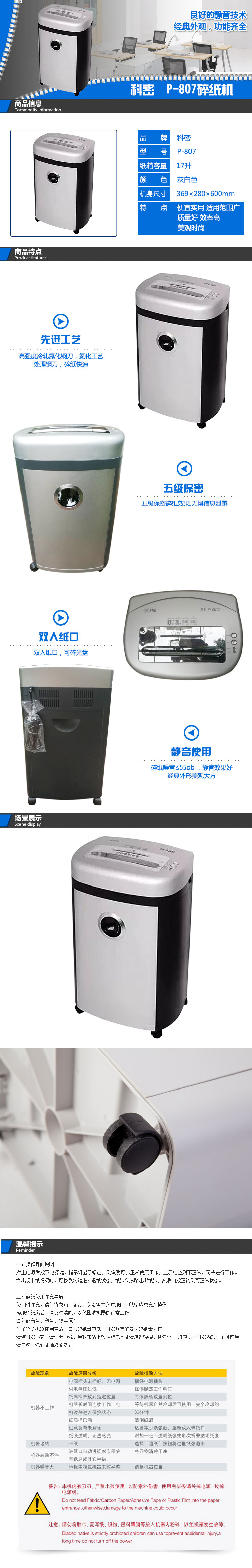 • 商品名稱:科密(Comet)P-807 碎紙機(jī) 灰白色 紙箱包裝 文件資料粉碎保密