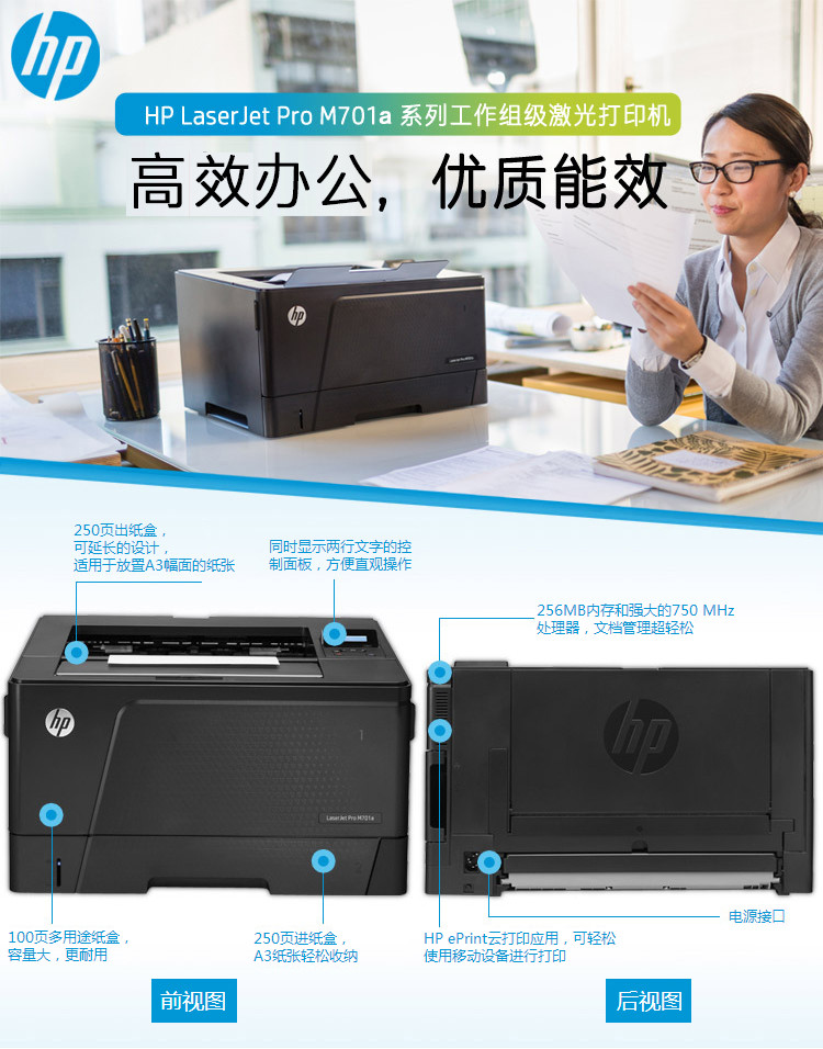 • 商品名稱:惠普(HP)LaserJet Pro M701a A3黑白激光打印機 A3幅面 一年送修