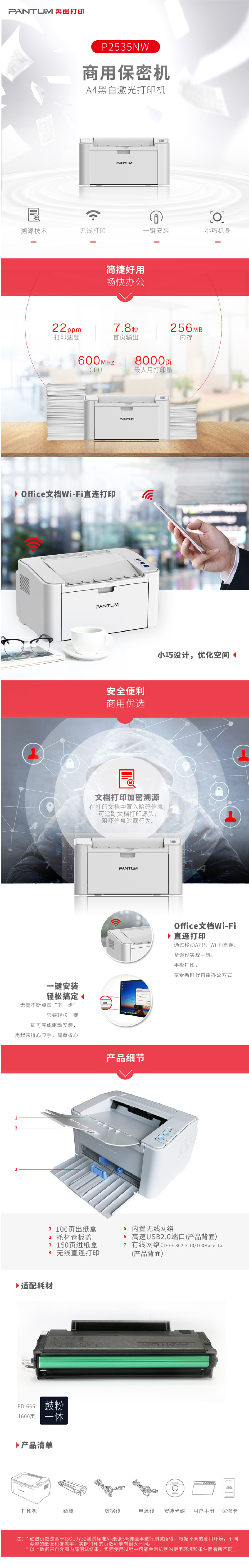 • 商品名稱:奔圖(PANTUM)商用保密系列 P2535NW 黑白激光打印機 無線網(wǎng)絡(luò)